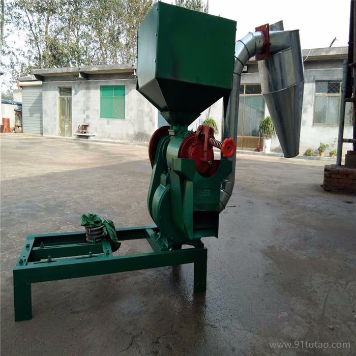 脱皮机工作室内装有铁筛网,筛网内安装砂轮磨,在筛网和砂轮磨之间形成一个原粮脱皮空隙,工作时筛网和砂轮反向转动,将粮食籽粒的种皮脱除,在脱皮的同时结合风选来分离仁和种皮,从而大大降低了破碎率,更为有效的提高脱皮质量和产量。
