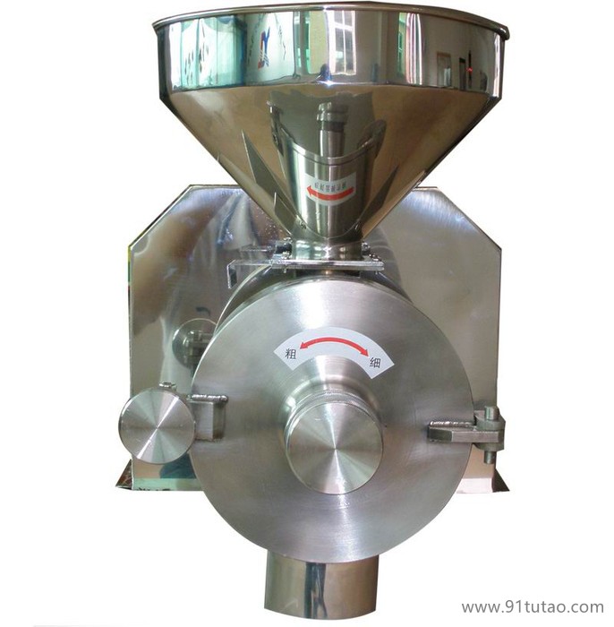 ▲▲操作与调整 1、磨粉机应放置在固定、结实的水平桌面或者台面上,厚实木更佳。电机下方的铁板有4个螺丝孔位,用长螺丝穿过螺丝孔将电机铁板牢固地固定在桌面或者台面(柜子)上;电机和桌面之间如果垫上软胶(橡胶垫),会减少震动,达到更好的静音效果。 2、电机罩也应该固定在桌面或者柜子上,应该使电机罩和电机铁板分开,不要贴近铁板,防止开机运转后铁板和电机罩产生振动和共鸣,再用短螺丝将电机罩锁紧。 3、将机盖打开,再将磨盘固定在连接轴上,再用两个大拇指按压在磨盘上,如果磨盘能够自由伸缩,说明磨盘和连接轴配合好了。再盖上机盖,拧紧锁紧螺母,通好电源,打开开关,检查磨粉机是否按指定的方向运转,声音、震动是否正常,如有异响或异常震动,应关机检查,排查问题直至正常,才能重新启动。 4、启动电源,运转1分钟左右,将物料放进料斗,将调节器拧至适当位置,打开下料挡板,使物料缓慢地流进磨粉腔。挡板开小一点,以免进料太快,卡死电机。普通物料一般磨两遍,**遍采取粗磨,第二遍细磨。 5、磨粉的粗细取决于两块磨片之间的间隙,而磨片的间隙靠调节器进行控制,根据机盖上的粗细指示,当调节器往细的方向调节时,两块磨片的间隙缩小,磨粉**变细;反之,磨粉则变粗。 6、调节器的调节范围和力度该如何控制,可以通过耳朵听磨片摩擦产生的声音以及电机运转的声音来决定,磨片靠得越紧,声音**更响更尖锐;反之,磨片靠得不紧或者分离,声音**柔和。 7、单独磨含油量特别高的物料如芝麻、核桃、花生等,因为这类物料的含油量特别高,只能磨成粗粉,磨细了,大量油分渗透出来,将使粉变成浆状。所以磨含油量特别高的物料时,调节器不要调太紧,磨片间隙保持稍微靠近甚至要完全分离,才能磨成粉状(小颗粒状)。以上物料如果需磨得很细,需要配不含油或者低含油量物料,高含油量和低(无)含油量物料的比例为:1﹕4至1﹕5,而且采取磨两遍的方法,**遍粗磨,第二遍细磨。 8、动磨片和静磨片的装卸:装在磨盘上的为动磨片,装在粉碎腔的为静磨片。将固定磨片的3枚螺丝取下,磨片**可卸下来。磨片的材质为生铁,生铁的硬度为52°左右,硬度大,弹性差。装磨片时,螺丝不可以拧太紧,以防磨片断裂。